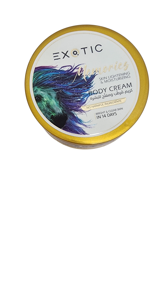 دللي بشرتك مع ايكزوتيك كريم مرطب للبشرة ميموريز 250مل الذي يجمع بين الترطيب العميق والرائحة العطرية الجذابة. تركيبته الخفيفة تمتص بسرعة دون ترك أي ملمس دهني، لتمنح بشرتك نعومة حريرية ولمسة انتعاش مع رائحة "ميموريز" المميزة التي تدوم لساعات طويلة.