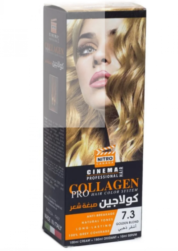 اختاري إطلالة ناعمة ومضيئة مع نيترو سينما صبغة بالكولاجين 7.3 – أشقر ذهبي – 100مل. تمنحك هذه الصبغة لونًا دافئًا ومشرقًا يدوم طويلًا، بفضل تركيبتها الغنية بالكولاجين الذي يعزز نعومة الشعر ويحميه من الجفاف والتقصف أثناء التلوين. صبغة مثالية للحصول على مظهر طبيعي مع تغطية ممتازة للشيب.