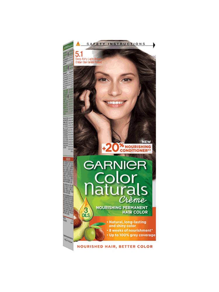 لإطلالة عصرية وطبيعية، اختاري صبغة غارنيه بدرجة بني رمادي فاتح (5.1). تمنحك لوناً بارداً ومطفأً بلمعة خفيفة، وتغذية عميقة للشعر بفضل زيوت طبيعية تحافظ على النعومة واللمعان بعد التلوين.
